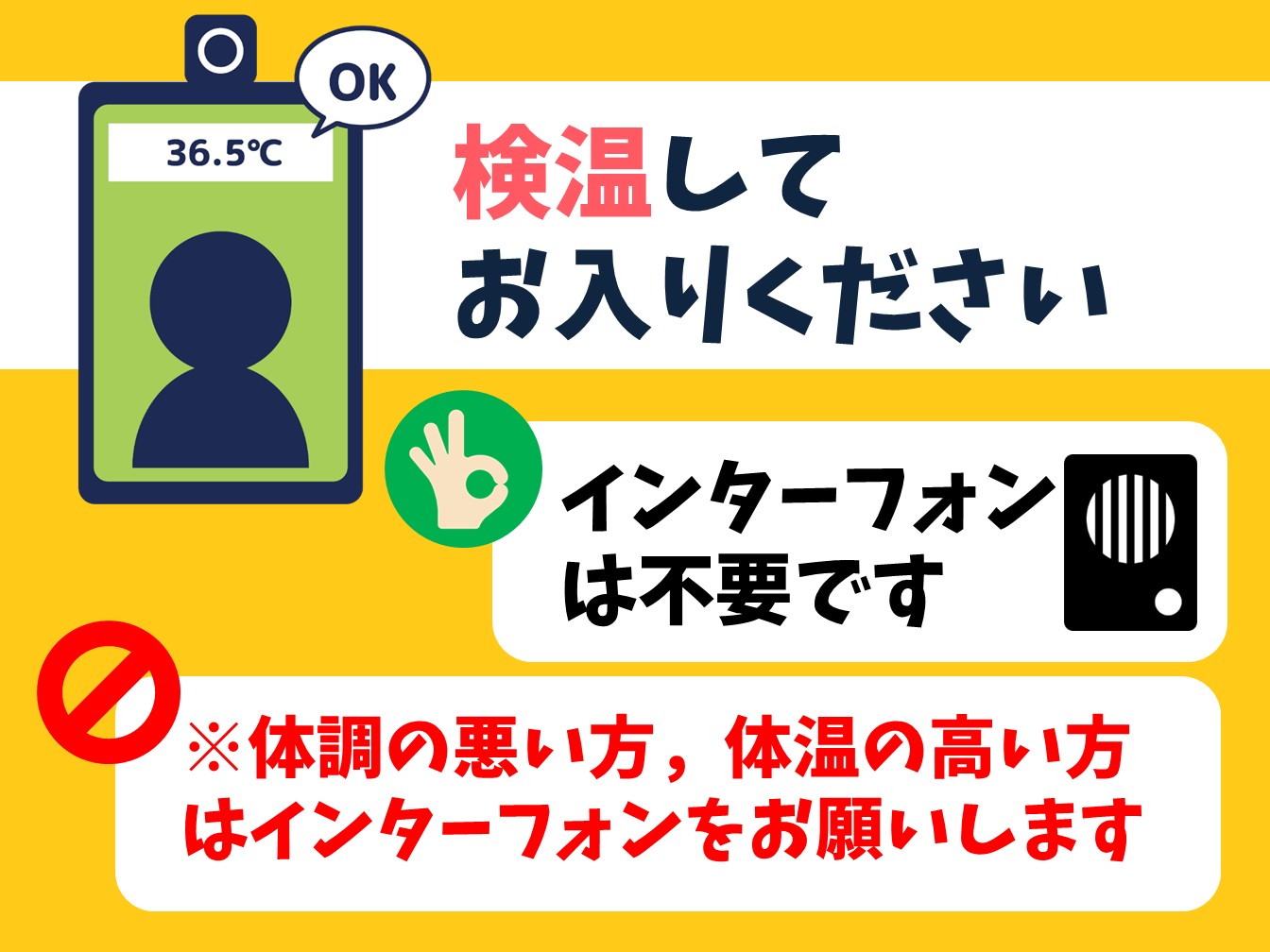 2025年6月9日より患者様のインターフォンが不要になりました。 検温をして2階へお上がりください。 ※体調の悪い方、体温が高い方はインターフォンでお知らせください。